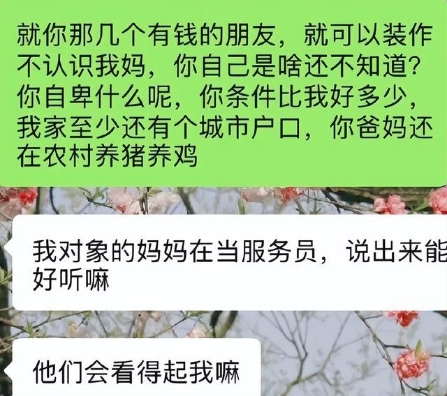 男友并不认为我方有什么错:“我只是认为我方对象的母亲当劳动员,说出去不是很体面,我的一又友齐在场,每个东谈主齐要顺眼。”