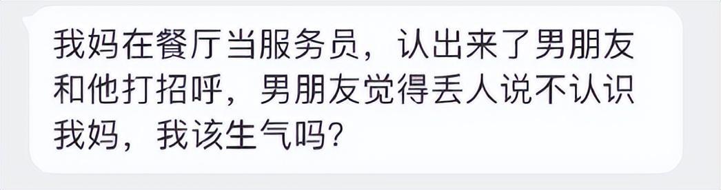 她责问男友:“去我妈上班的店里吃饭,你为什么要装作不订立她?你以为你是什么东谈主物啊?”
