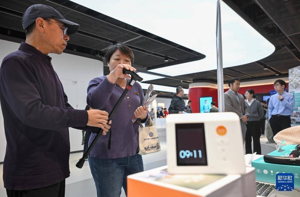 10月25日,市民在“敬老月”主题活动的养老遽然季展厅参不雅一款定位呼唤智能手杖。