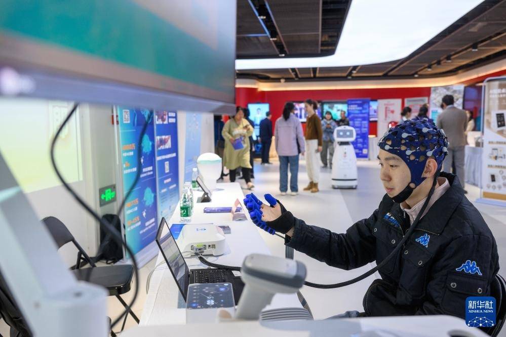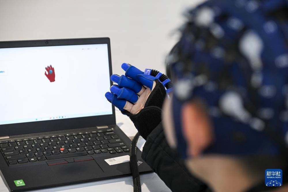 10月25日,工程师在“敬老月”主题活动的养老遽然季展厅演示脑机接口手部绽开反应康复熟悉系统。